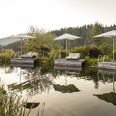Unser Hotel mit Pool in der Steiermark, die frische Luft, kristallklares Wasser und der Weitblick in die umgebende Landschaft der steirischen Alm berühren alle Sinne und schenken Ihnen eine wohltuende Auszeit der Frische und Regeneration.